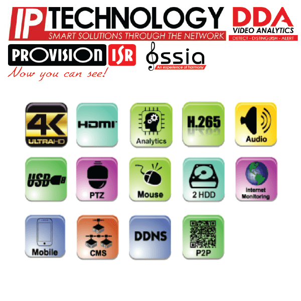 מערכת הקלטה 16 ערוצים PROVISION NVR דגם NVR8-16400A(1U) רזולוציה 8MP . רזולוציה HDMI (4K,1080P) VGA (1280X1024)