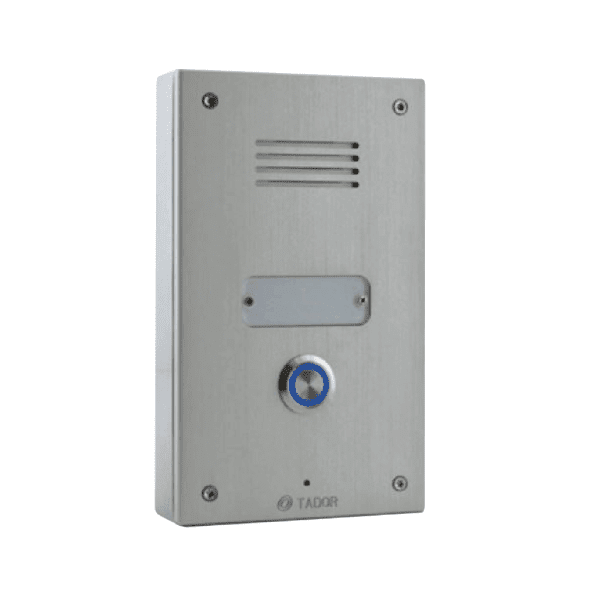 פנל אינטרקום חיצוני, עשוי מתכת אנטי ונדלי, המשולב לחצן מואר, להתקנה על הטיח. חיבור למתאם טלפון AR200 המאפשר מענה מכל שלוחת טלפון ביתית
