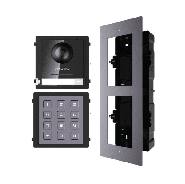 אינטרקום טלוויזיה HikVision דור-2 IP דגם DS-KIS8003-ACF2 המורכב ממודול קודן ומודול דלת כניסה KD8003 ומסך מגע 7" DS-KH6320 הפועל עם אפליקציה